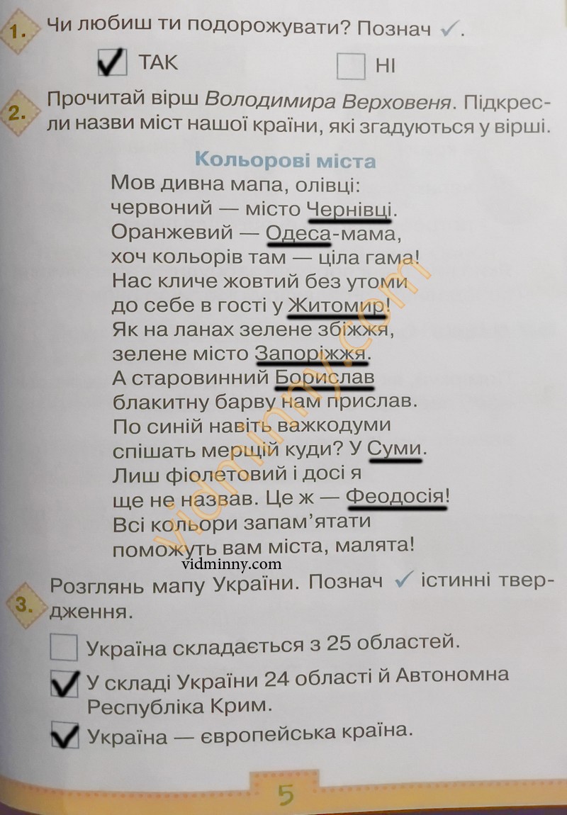 2. Прочитай вірш Володимира Верховеня. Підкресли назви міст нашої країни, які згадуються у вірші.