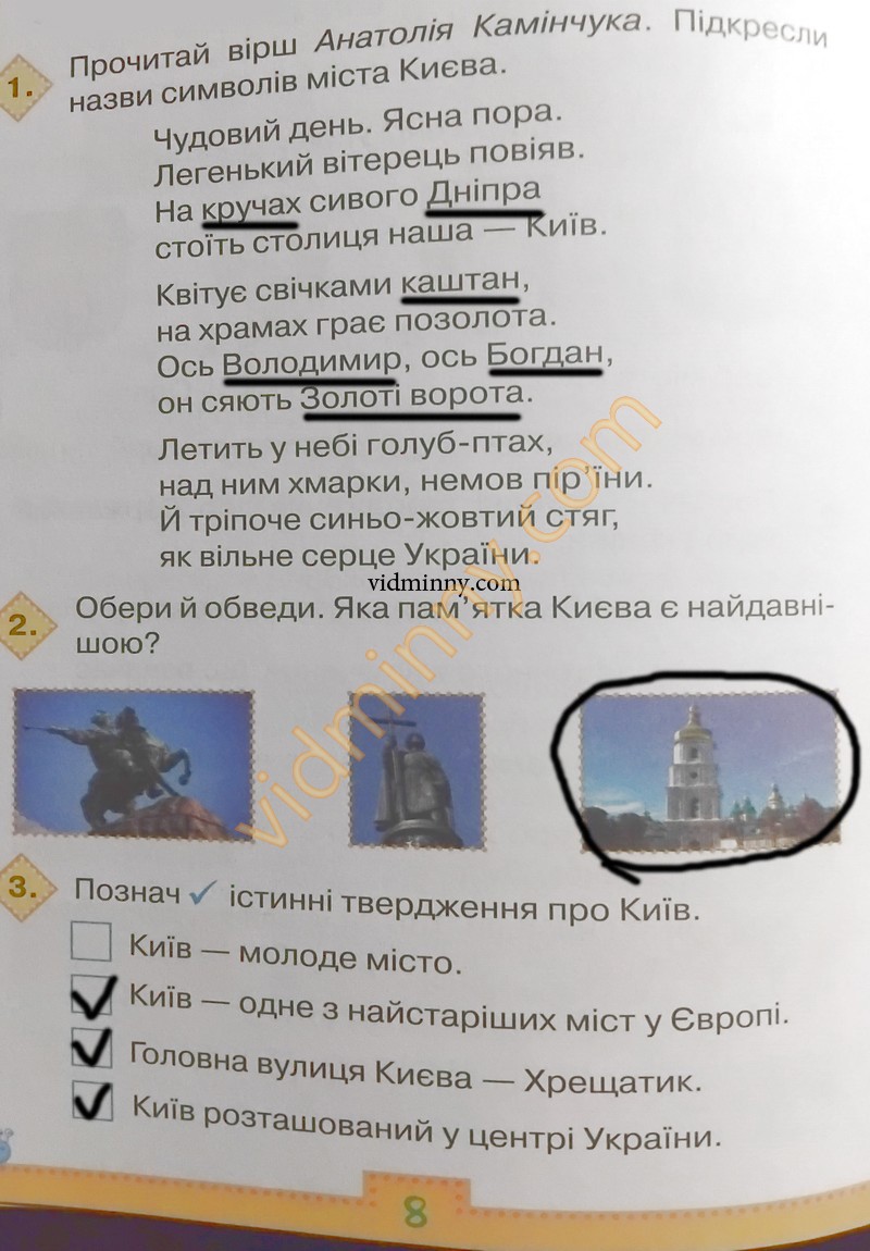 1. Прочитай вірш Анатолія Камінчука. Підкресли назви символів міста Києва.
