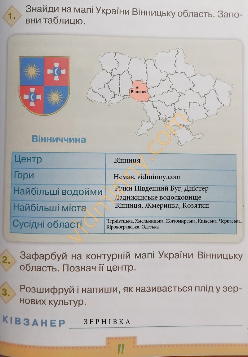 1. Знайди на мапі України Вінницьку область. Заповни таблицю.