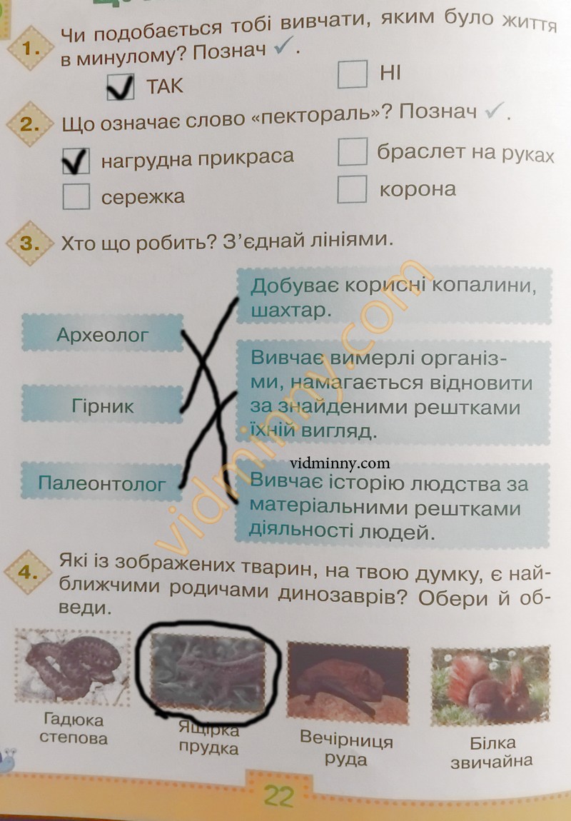 1. Чи подобається тобі вивчати, яким було життя в минулому? Познач ✓