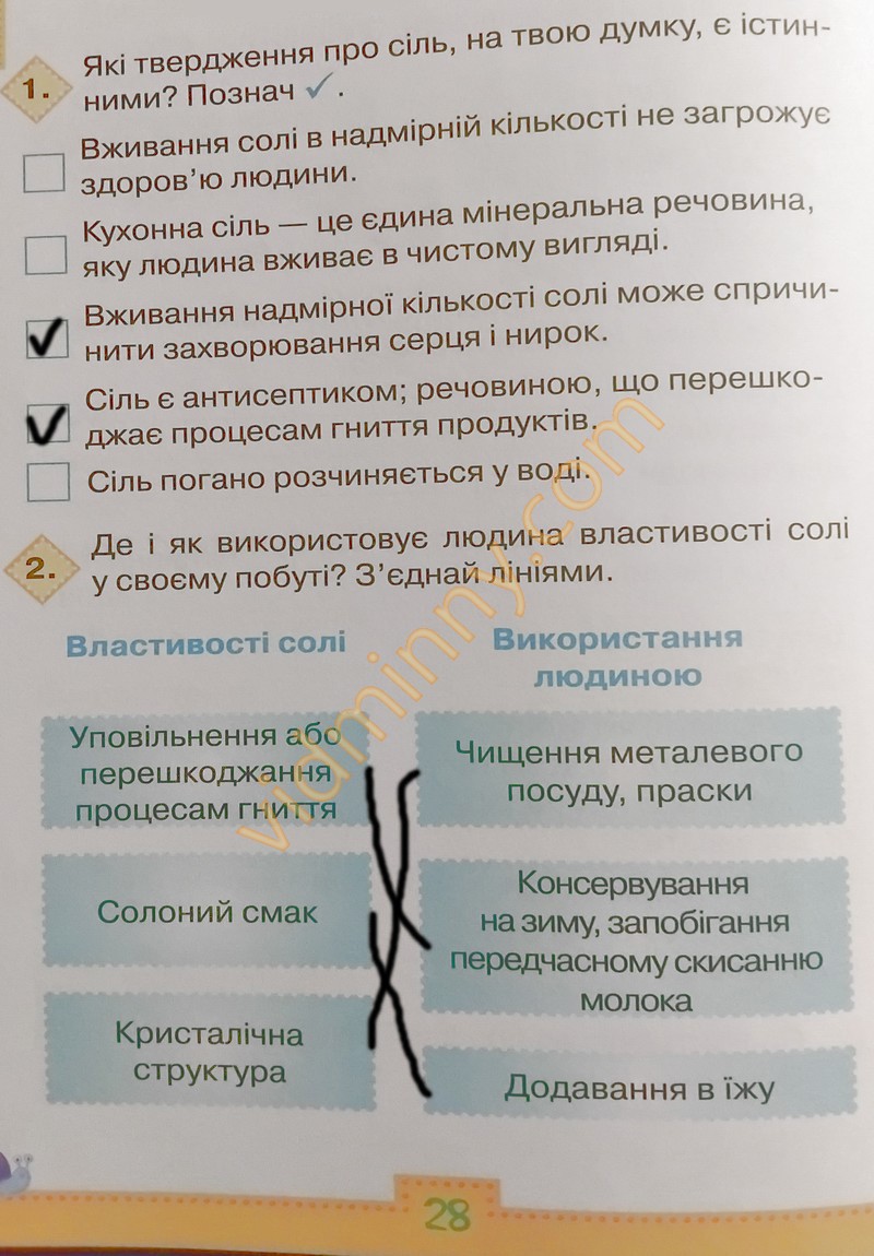 1. Які твердження про сіль, на твою думку, є істинними? Познач ✓