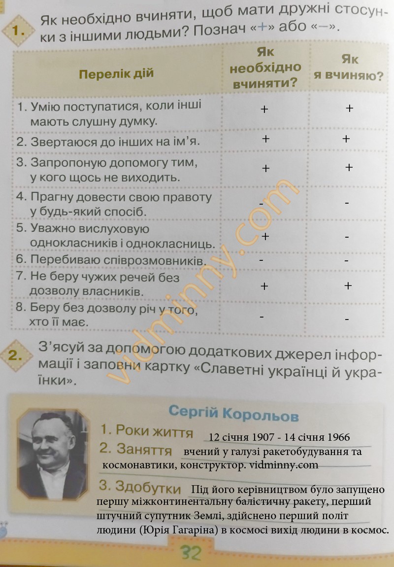 1. Як необхідно вчиняти, щоб мати дружні стосунки з іншими людьми? Познач "+" або "-".