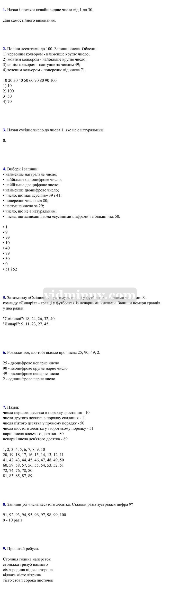 - Додавання та віднімання чисел у межах 100 і 1000;