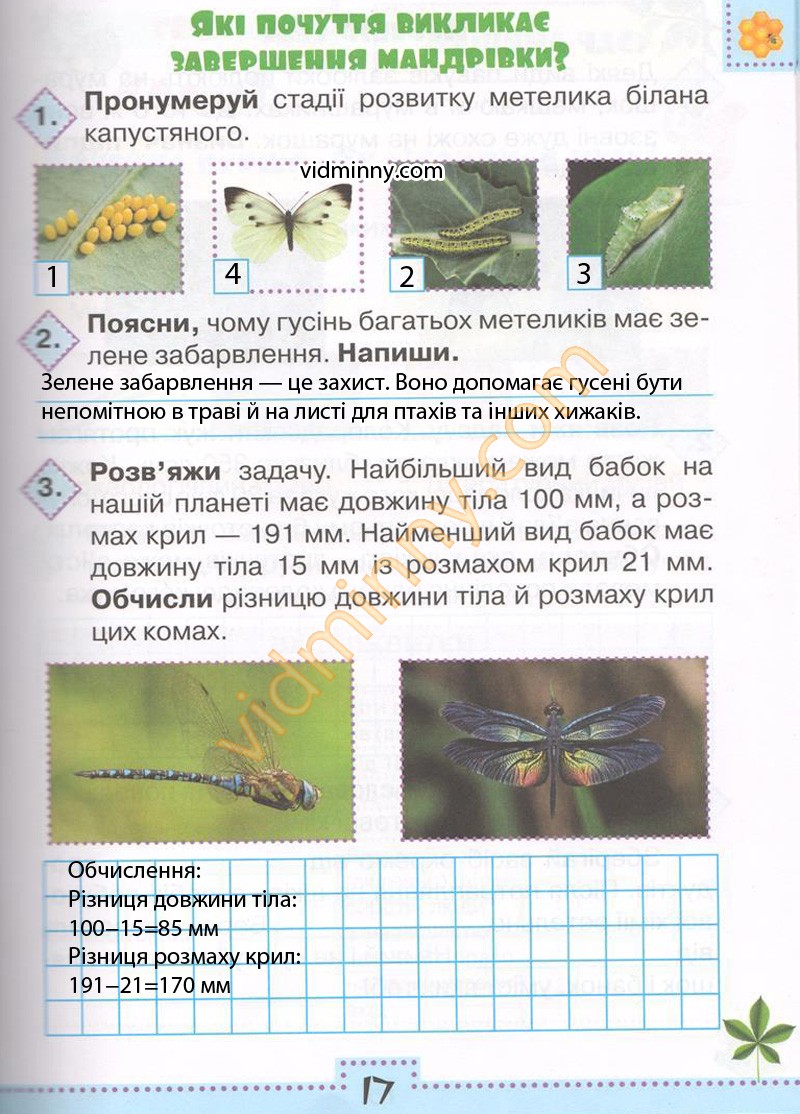 3. Розв'яжи задачу. Найбільший вид бабок на нашій планеті має довжину тіла 100 мм, а розмах крил - 191 мм. Найменший вид бабок має довжину тіла 15 мм із розмахом крил 21 мм.