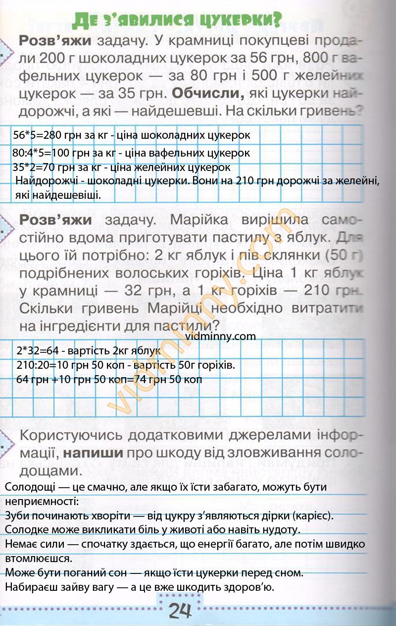 3. Користуючись додатковими джерелами інформації, напиши про шкоду від зловживання солодощами.