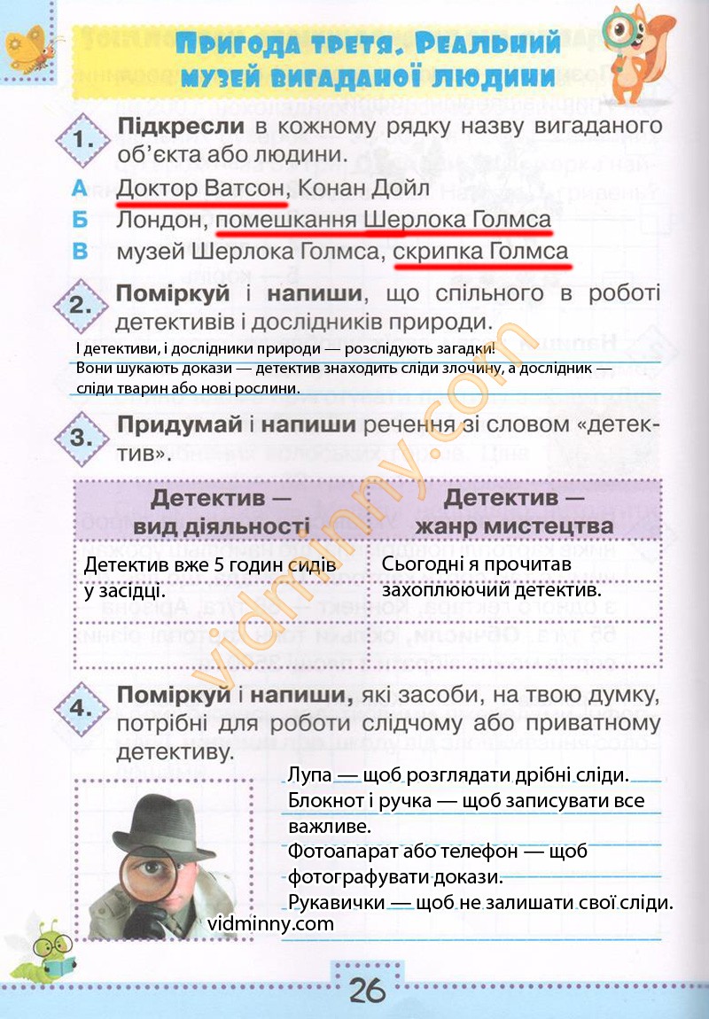 2. Поміркуй і напиши, що спільного в роботі детективів і дослідників природи.