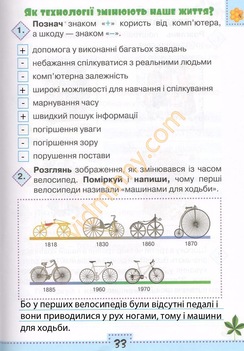 2. Розглянь зображення, як змінювався з часом велосипед. Поміркуй і напиши, чому перші велосипеди називали "машинами для ходьби".