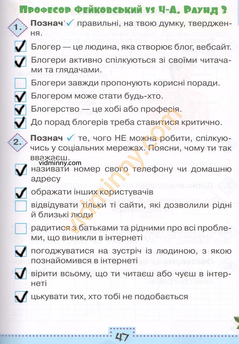 2. Познач ✓ те, чого НЕ можна робити, спілкуючись у соціальних мережах. Поясни, чому ти так вважаєш.