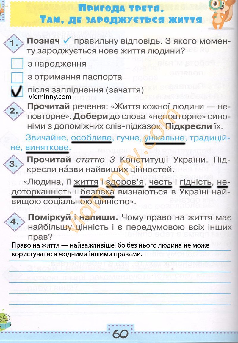 4. Поміркуй і напиши. Чому право на життя має найбільшу цінність і є передумовою всіх інших прав?