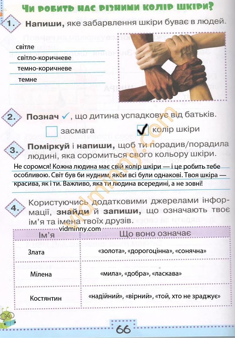 3. Поміркуй і напиши, щоб ти порадив/порадила людині, яка соромиться свого кольору шкіри.