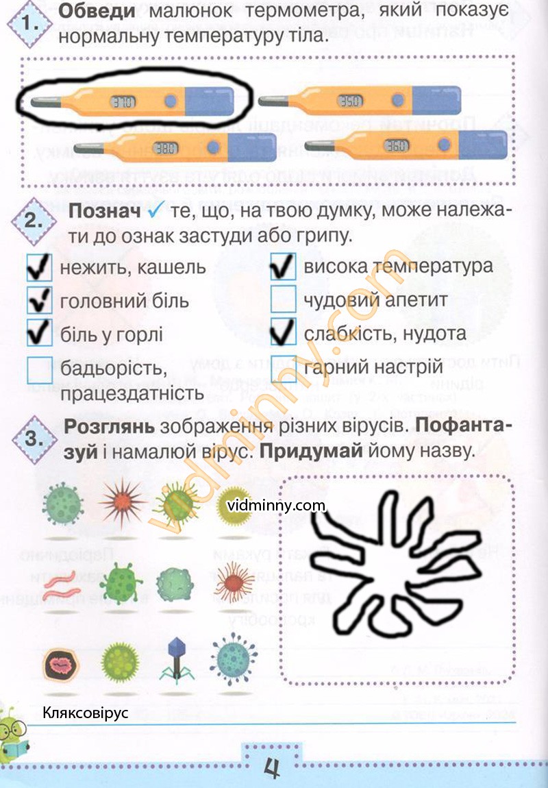 1. Обведи малюнок термометра, який показує нормальну температуру тіла.