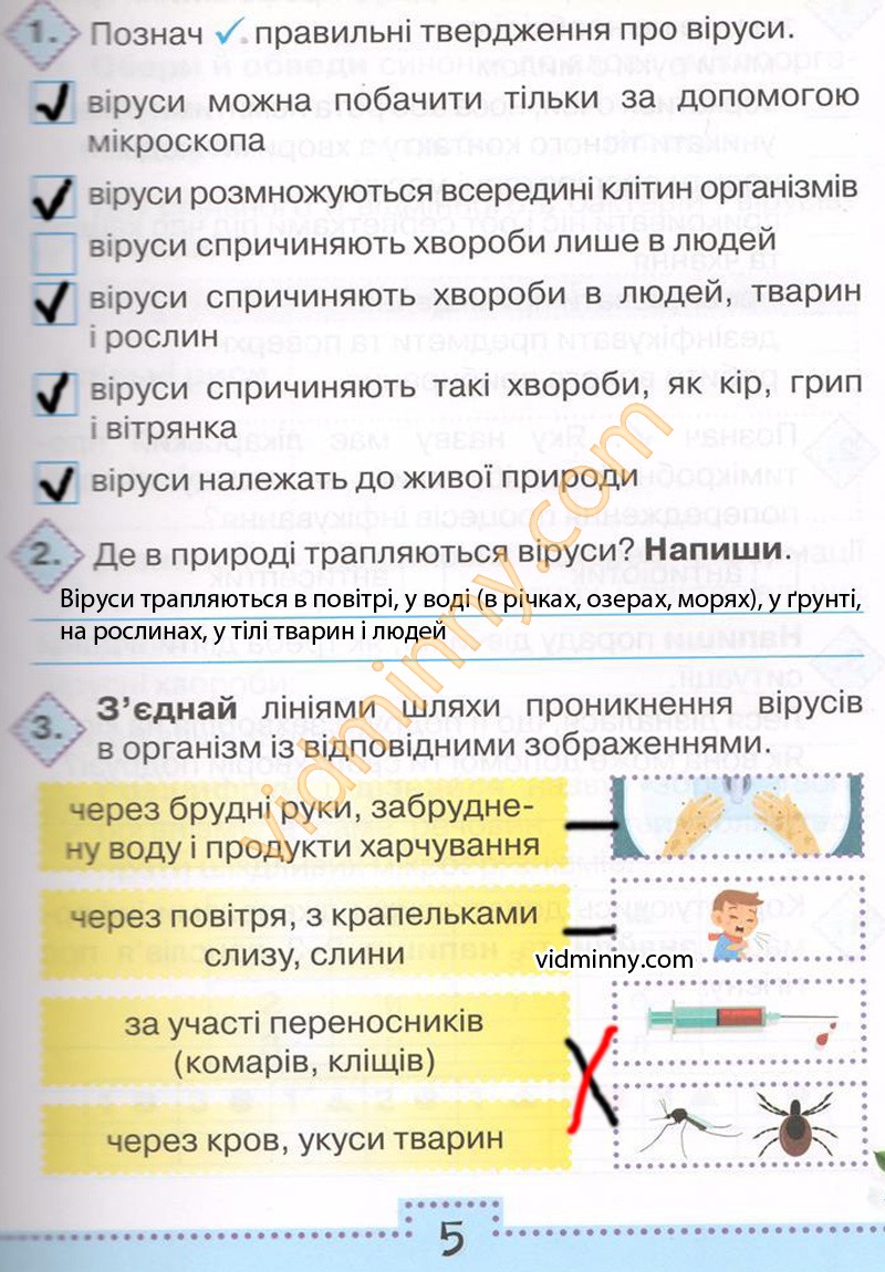 3. З'єднай лініями шляхи проникнення вірусів в організм із відповідними зображеннями.