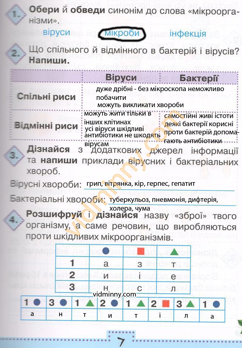 1. Обери й обведи синонім до слова "мікроорганізми"
