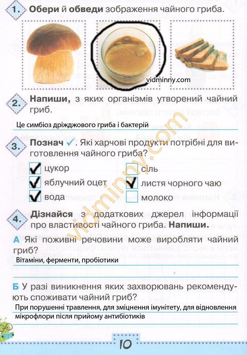 4. Дізнайся з додаткових джерел інформації про властивості чайного гриба. Напиши.