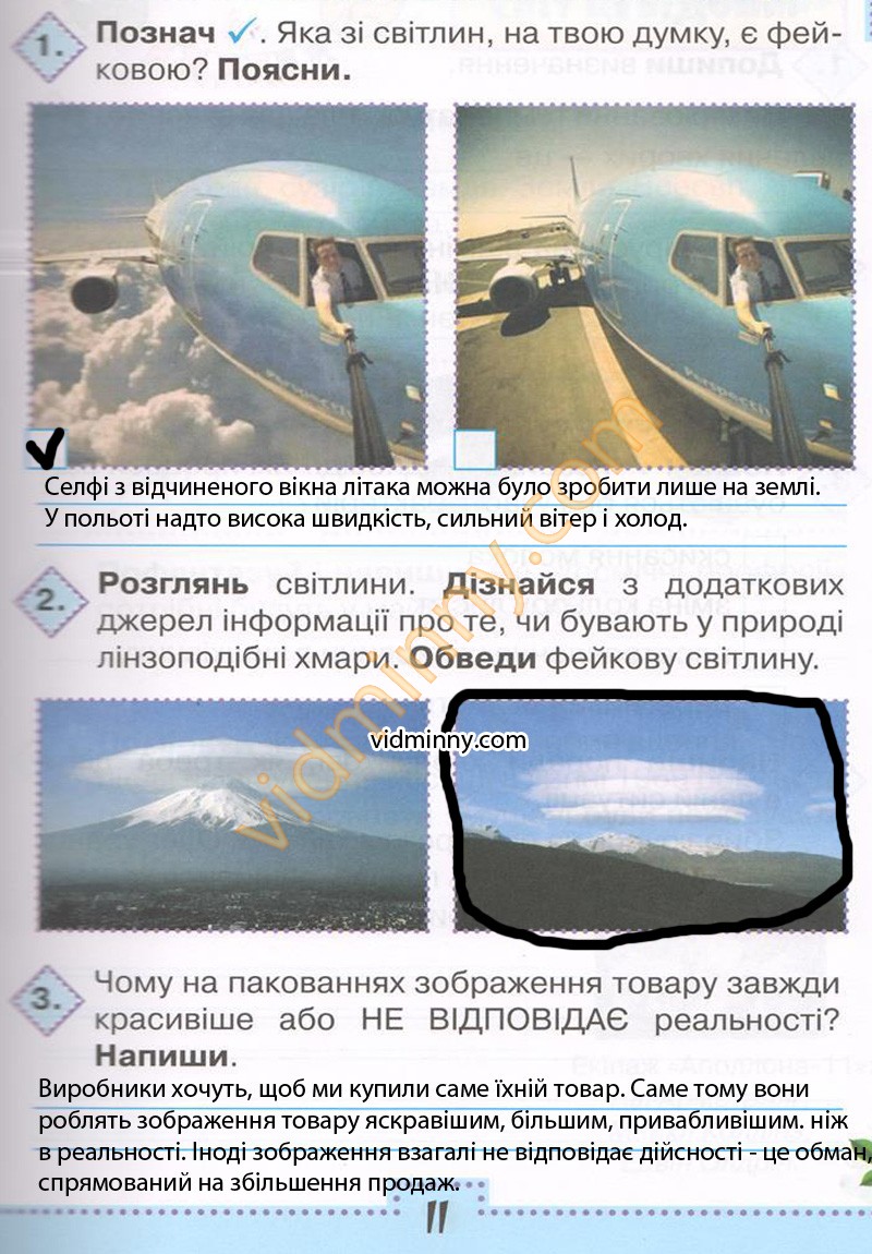 1. Познач ✓. Яка зі світлин, на твою думку, є фейковою? Поясни.