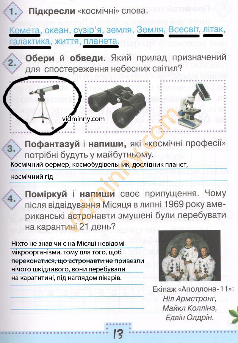 4. Поміркуй і напиши своє припущення. Чому після відвідування Місяця в липні 1969 року американські астронавти змушені були перебувати на карантині 21 день?