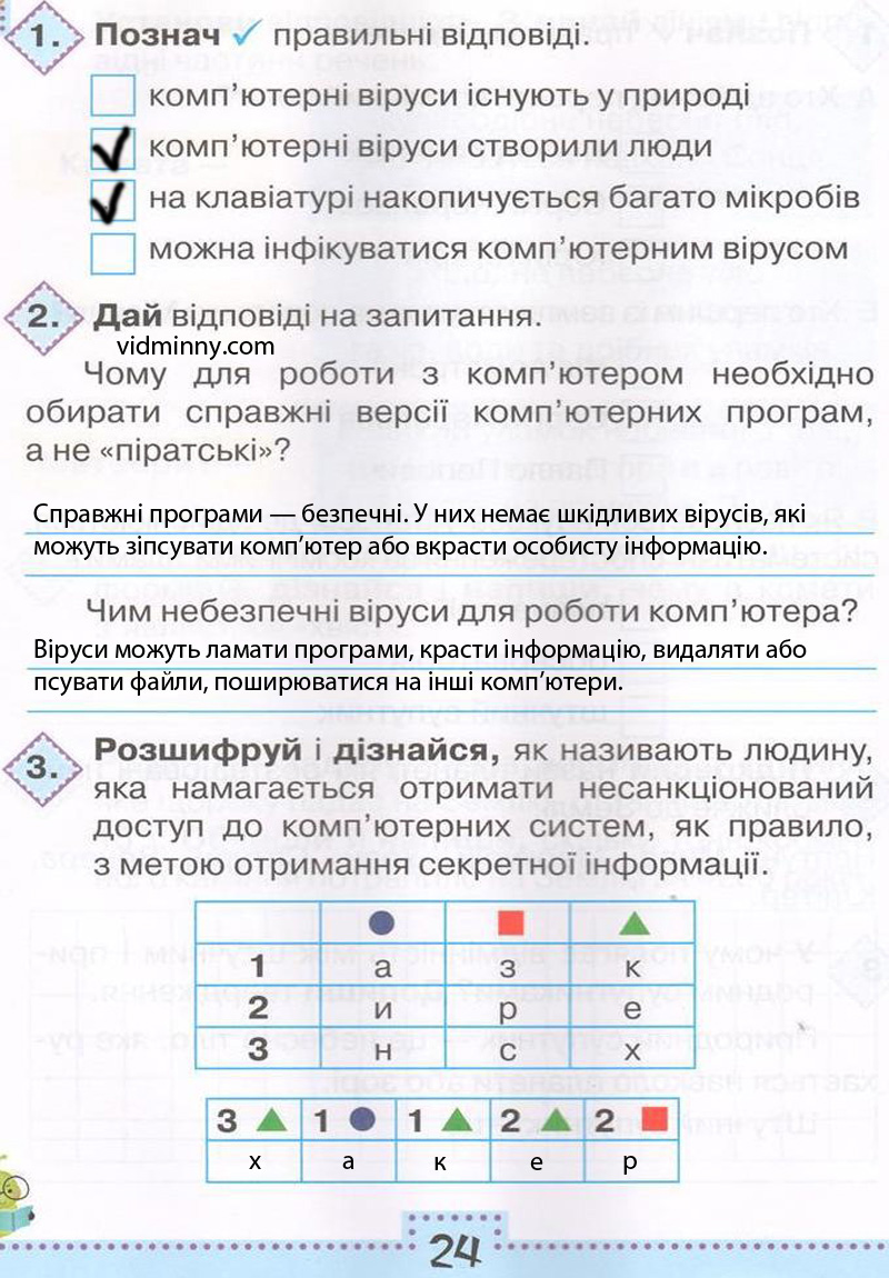 3. Розшифруй і дізнайся, як називають людину, яка намагається отримати несанкціонований доступ до комп'ютерних систем, як правило, з метою отримання секретної інформації.