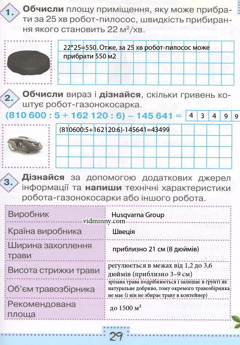 2. Обчисли вираз і дізнайся, скільки гривень коштує робот-газонокосарка.