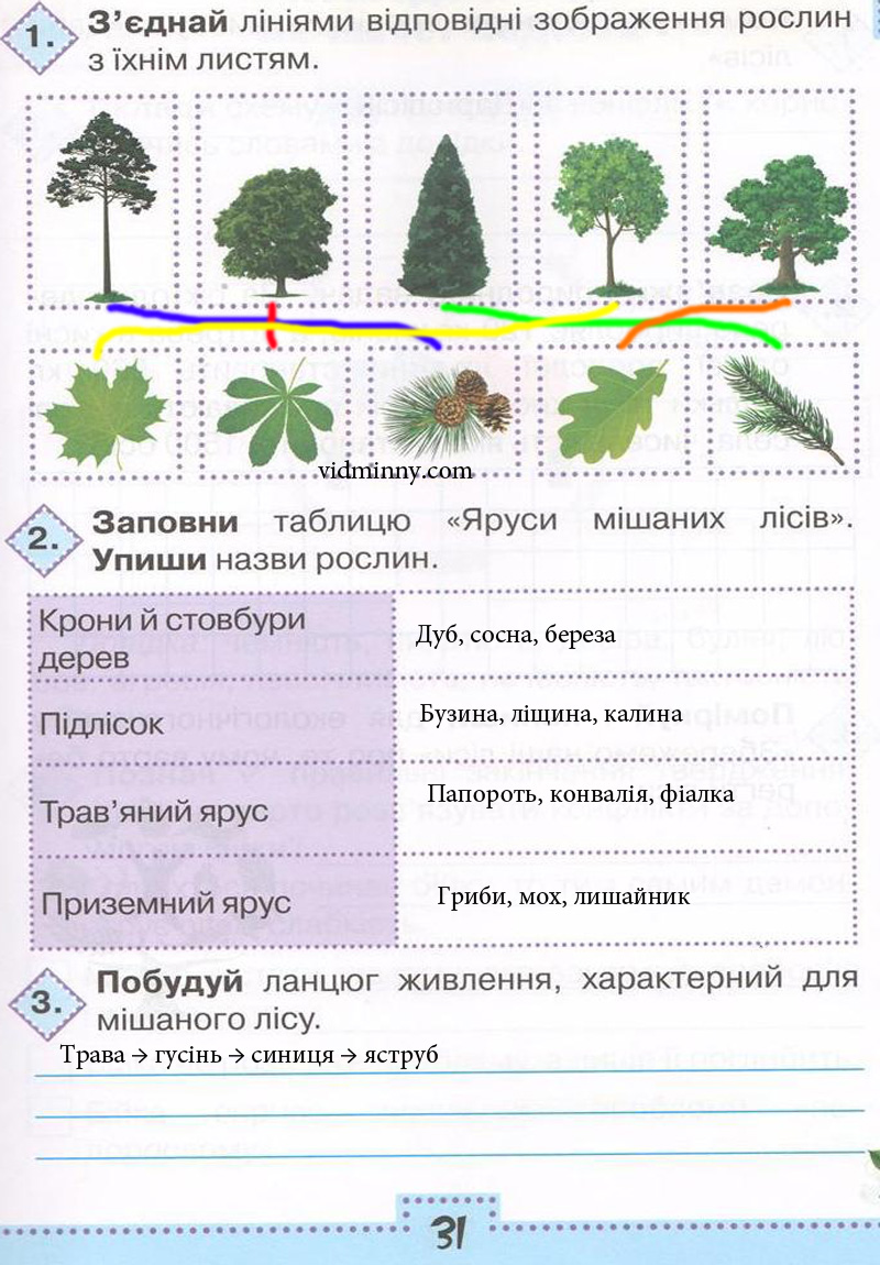 3. Побудуй ланцюг живлення, характерний для мішаного лісу.