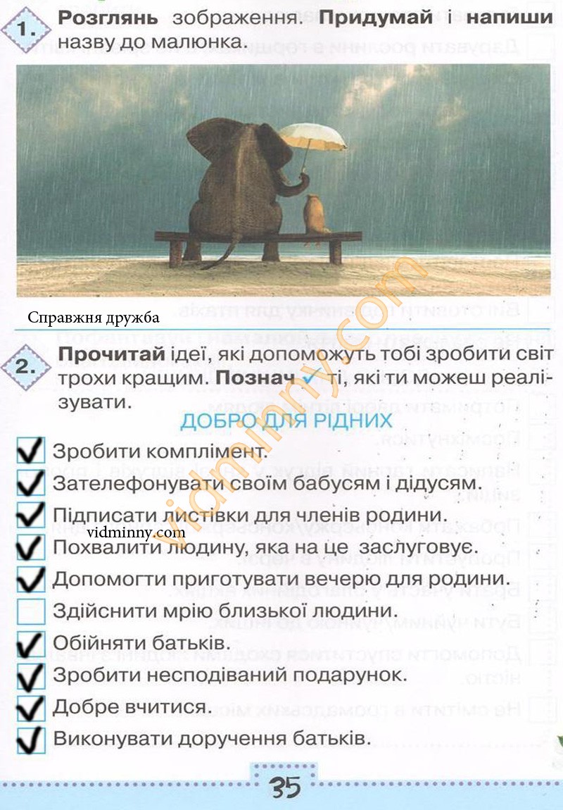 2. Прочитай ідеї, які допоможуть тобі зробити світ трохи кращим. Познач ✓ ті, які ти можеш реалізувати.