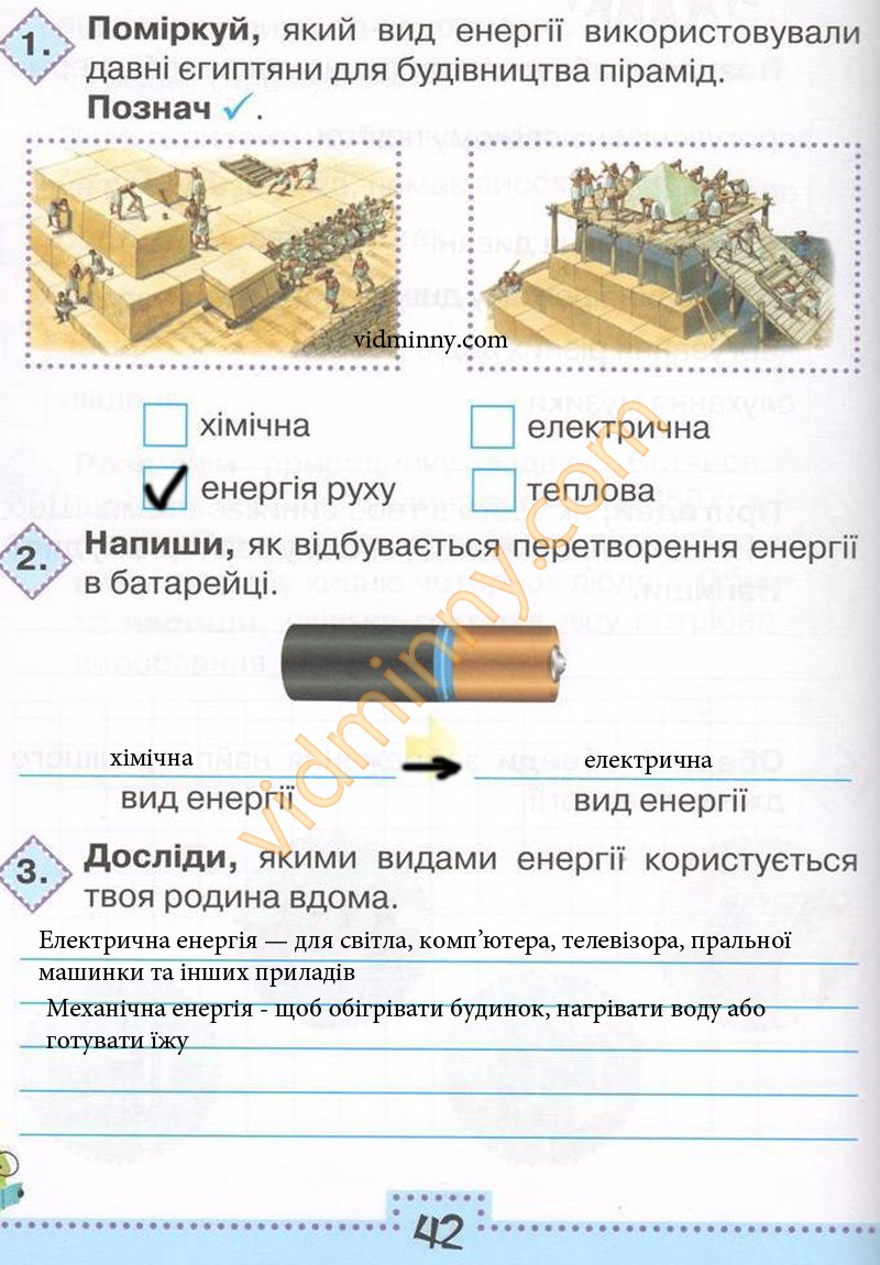 1. Поміркуй, який вид енергії використовували давні єгиптяни для будівництва пірамід.