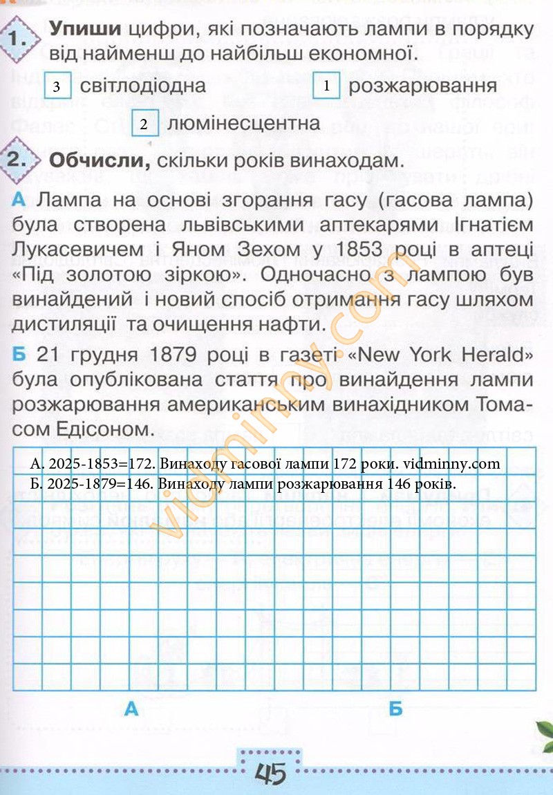 1. Упиши цифри, які позначають лампи в порядку від найменш до найбільш економної.