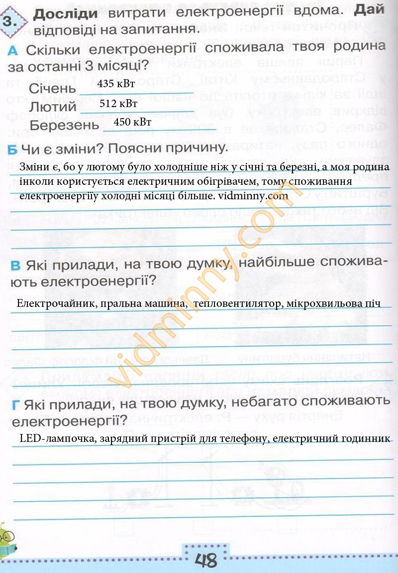 3. Досліди витрати електроенергії вдома. Дай відповіді на запитання.
