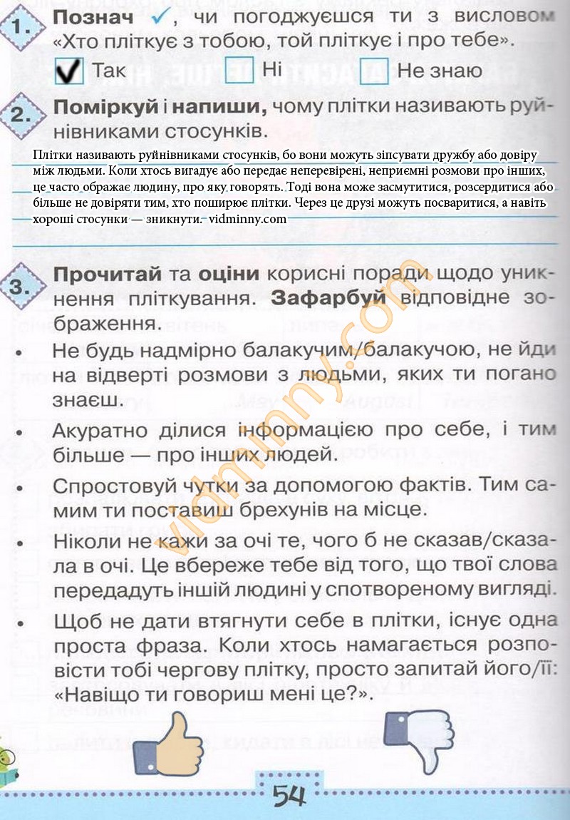 3. Прочитай та оціни корисні поради щодо уникнення пліткування. Зафарбуй відповідне зображення.