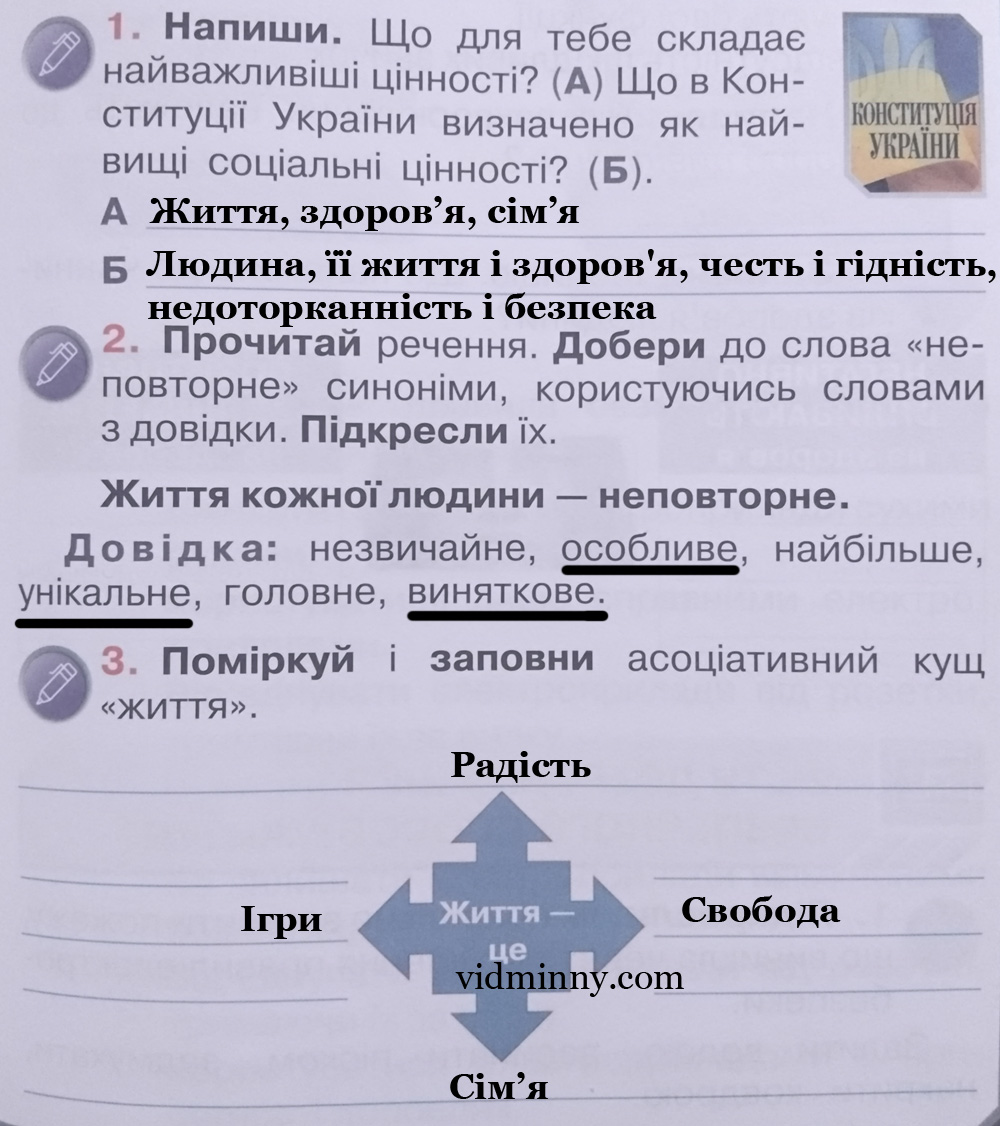 - приклади особистих відповідей та роздумів;