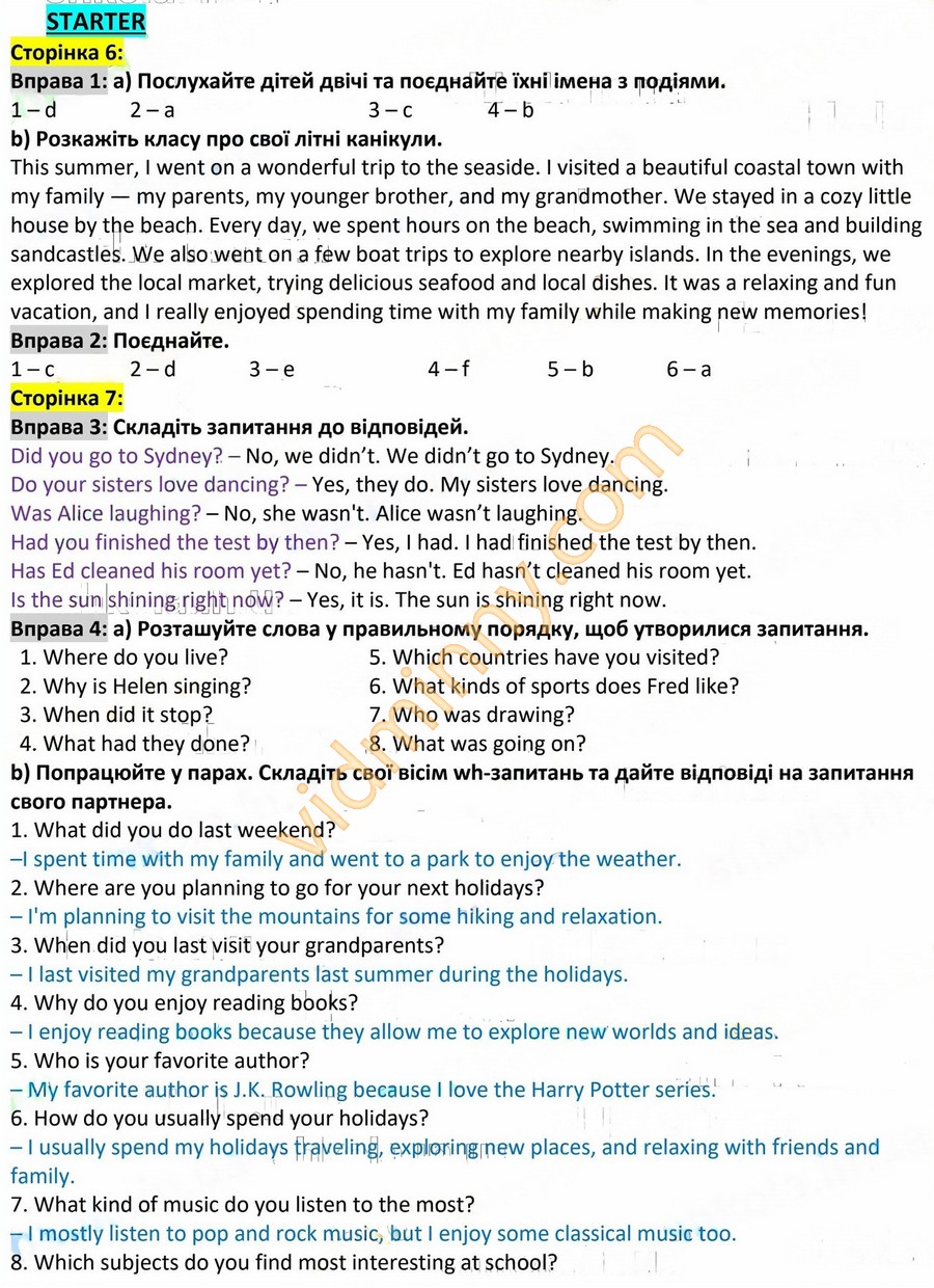 ГДЗ пояснює кожне граматичне правило через приклади, показує правильну побудову речень, дає переклад слів і фраз. Це важливо для формування зв’язного мовлення і розуміння контексту. Особливо корисними є відповіді до текстів для читання та завдання з письма — листи, повідомлення, опис ситуацій. Учень бачить, як правильно будувати логіку відповіді, які слова й вирази доречно використовувати.